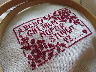 Another stitch a long, this time Fox and Rabbit AI 1664. It is not AI, these are the initials of the girl who stitched the original sampler in 1664.