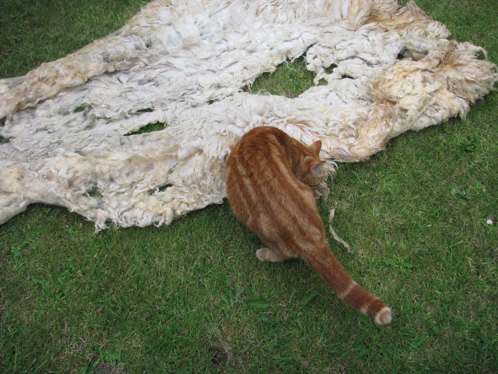 First up was the Shetland cross which was duly inspected by the cat who has never come across raw fleece before, suspect he didn't like it!!