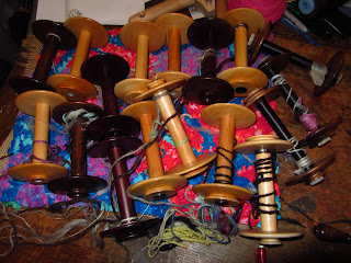 After a major hunt around my workroom I've managed to most of my bobbins and empty off any scraps of spinning so I'm now all set for the next month.